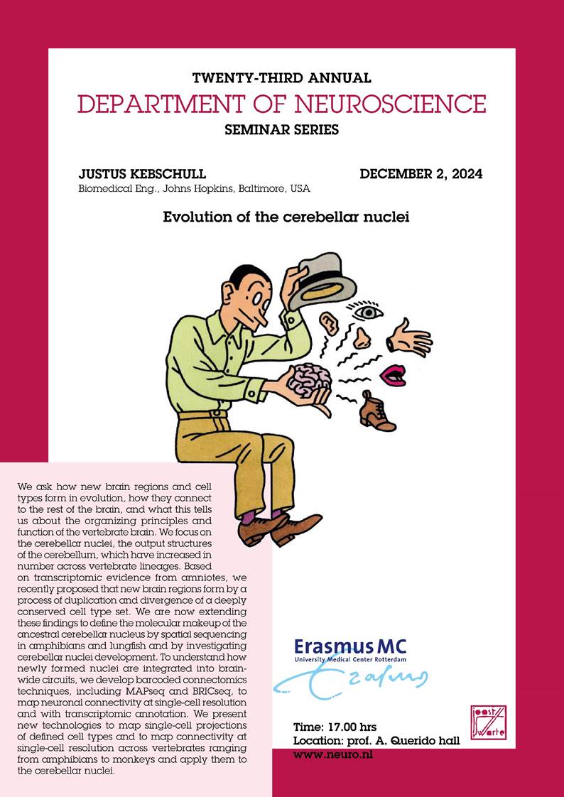 You are cordially invited to the last Seminar Series 2024 of this year at the Department of Neuroscience , Erasmus MC.