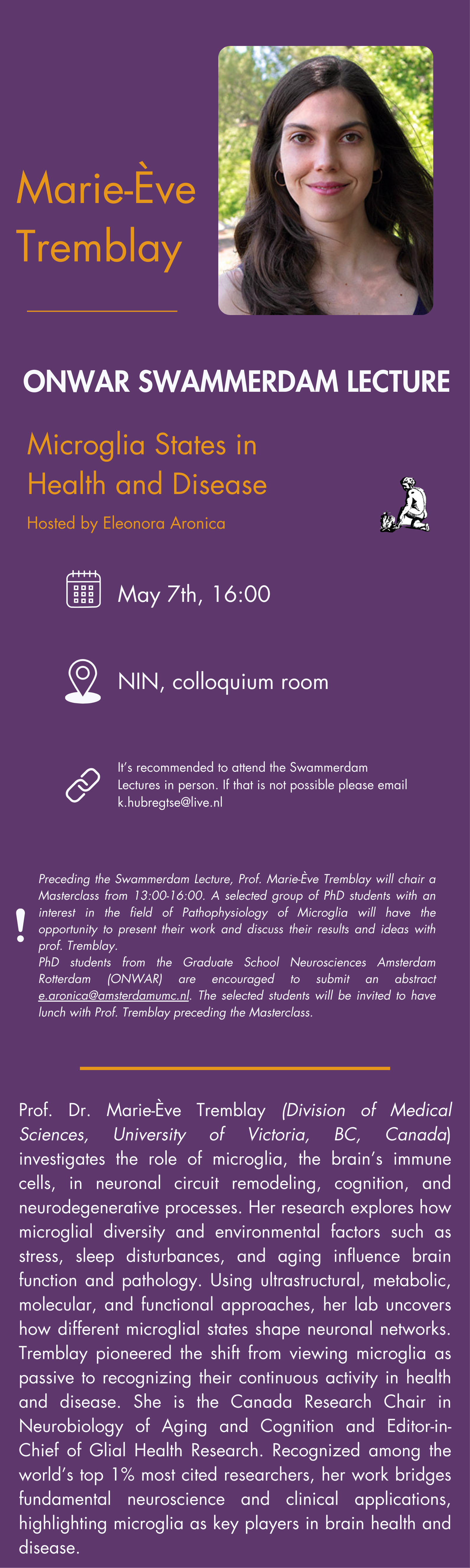 [Onwar-phd] REMINDER: Invitation to the ONWAR Swammerdam Lecture: Marie-Ève Trembley | 7th of May 16:00