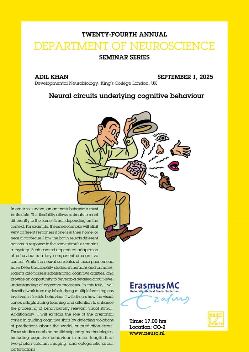 At the start of the new academic year on 1 September you are all invited to the Seminar Series 2025 of the Department of Neuroscience, Erasmus MC.