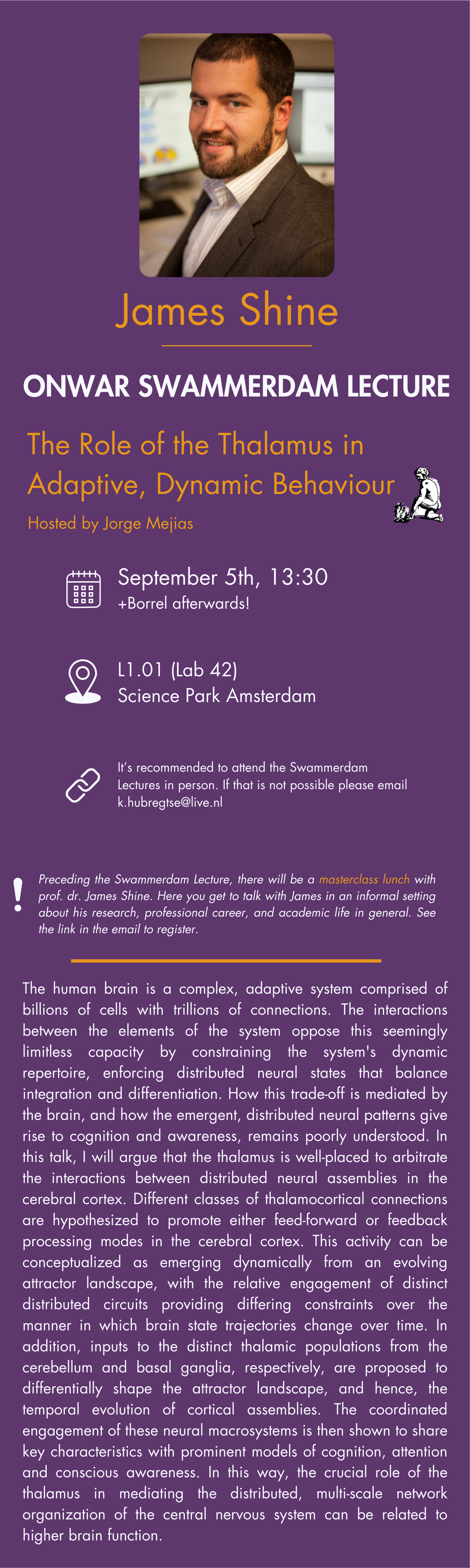 We realize this announcement comes at short notice, but we strongly encourage you to join this inspiring lecture!