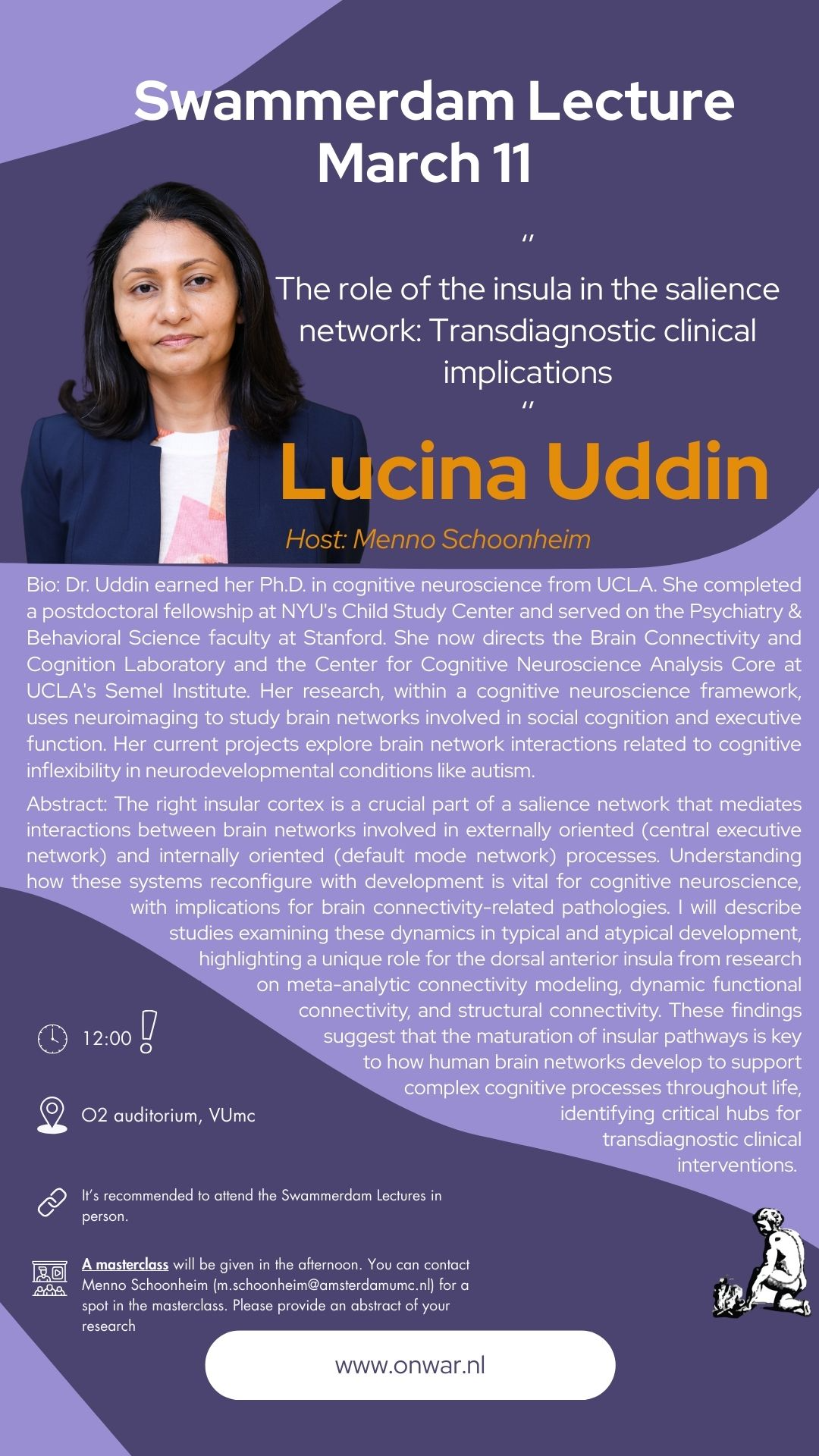 Onderwerp: ONWAR Swammerdam Lecture Invitation | March 11 | Lucina Uddin