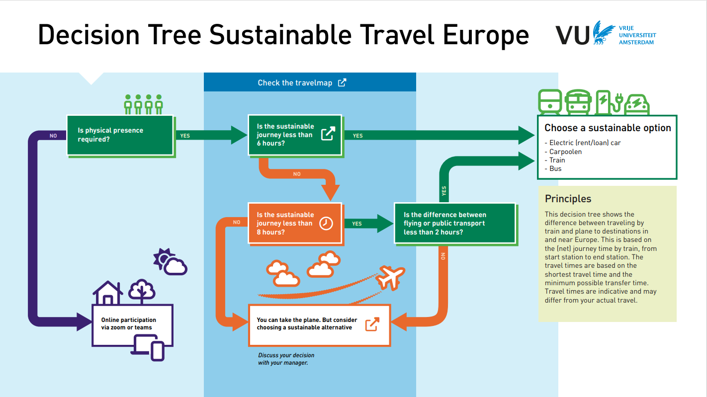 Once you have permission from your manager to undertake the official travel, you can book the trip. Naturally, the sustainable travel decision tree<https://assets-us-01.kc-usercontent.com/d8b6f1f5-816c-005b-1dc1-e363dd7ce9a5/57990a8f-00db-42c5-8ac4-0c55228e4290/Beslisboom_duurzame_reisEN.png> determines the way in which you will travel.